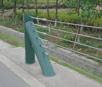 产品简介: 六索缆索护栏是缆索护栏的一种,其由六根缆索组成公路上面的防撞护栏。路侧缆索护栏的防撞等级分为A级和s级两类,S级护栏属加强型,适用于危险路段。中央分隔带的缆索护栏的防撞等级分为A级。埋置条件可分为埋设于土中和混凝土中两类,立柱无法打人的地方和路基填土不能保证立柱埋置深度的地方采用混凝土基础的办法。而六索缆索护栏是缆索护栏的加强型,采用六根具有较高强度和抗腐性能优良的3×7镀锌/右凝构造钢索。