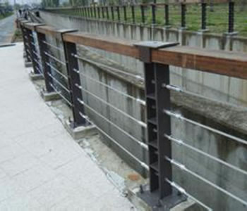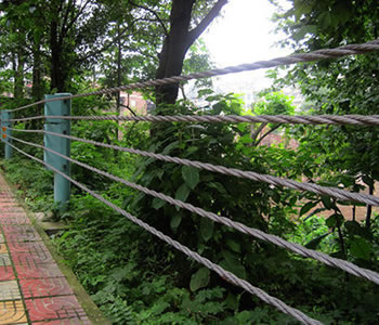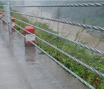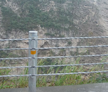 绳索护栏是一种柔性护栏。它是以数根施加初张力的缆索固定于立柱上而组成的结构。主要通过缆索的拉应力来抵抗车辆的碰撞,吸收碰撞能量。降低车辆损伤程度和对司乘人员的伤害。