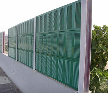声屏障,主要用于公路、高速公路、高架复合道路和其它噪声源的隔声降噪。分为纯隔声的反射型声屏障,和吸声与隔声相结合的复合型声屏障,后者是更为有效的隔声做出来的。指的是为减轻行车噪声对附近居民的影响而设置在铁路和公路侧旁的墙式构造物。隔音墙也称为声屏障。在声源和接收者之间插入一个设施,使声波传播有一个显著的附加衰减,从而减弱接收者所在的一定区域内的噪声影响,这样的设施就称为声屏障。分为交通隔音屏障、设备噪音衰减隔音屏障、工业厂界隔音屏障、公路和高速公路上是使用各类型声屏障最多的地方。