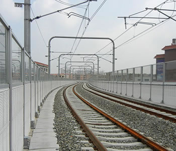 隔音墙(声屏障)主要用于高速公路、高架复合道路和其它噪声源的隔声降噪。(安平县白马丝网制造的声屏障)分为纯隔声的反射型声屏障,和吸声与隔声相结合的复合型声屏障,后者是更为有效的隔声做出来的。指的是为减轻行车噪声对附近居民的影响而设置在铁路和公路侧旁的墙式构造物。隔音墙也称为声屏障。