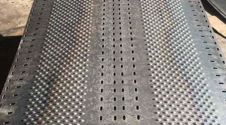 防滑板材料,分为普通铁板、不锈钢板、铝板、铝合金板、橡胶金属混合板等。