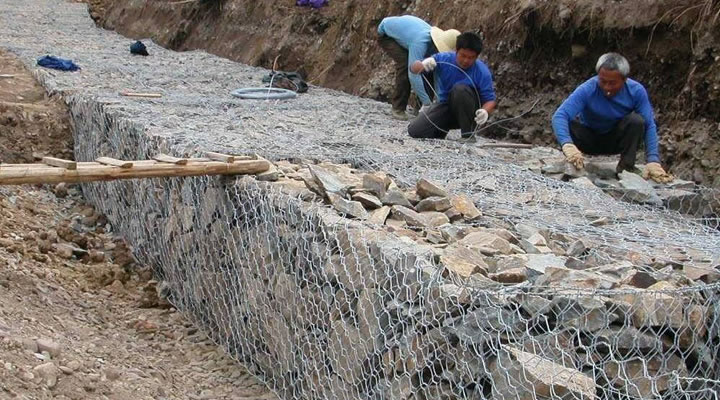 石笼网可用于边坡支护、基坑支护、山体岩面挂网喷浆、边坡植生(绿化)、铁路高速公路隔离护拦网,它还能制成箱笼、网垫,用于江河、堤坝及海塘的防冲刷保护,水库、河流截流用网箱。河流最严重的灾害是水流冲刷河岸使其破坏,引发的洪水泛滥,导致生命财产遭受大量损失和大量水土流失。因此在处理上述问题时侯,格该生态格网结构的应用成为最佳的解决方案之一,它能使河床河岸得到永久性保护。