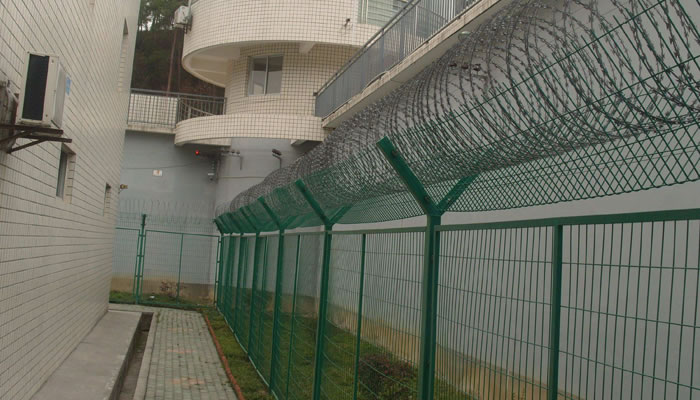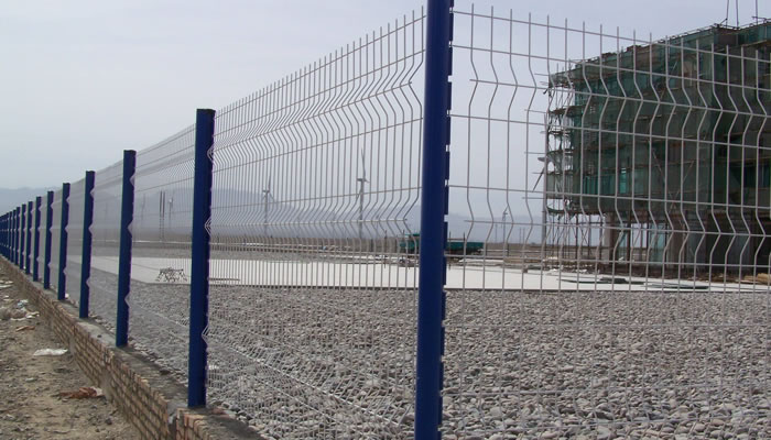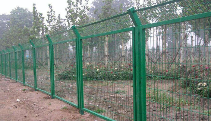 护栏网采用优质盘条作为原材料,经由镀锌、涂前底漆和高附着力粉末喷涂三层保护的焊接式网片,具有日久抗腐蚀、抗紫外线的特性。在这种护栏网的表面处理为镀锌和喷涂,也可以任选一种,顶端盖有塑料盖或防雨帽。根据环境和安装方式不同,可选用预埋50cm、加底座等方式。将边框护栏网的网片和立柱靠螺丝和各类特殊的塑料或铁的卡子连接。所有的螺丝均为自动防盗的。所用配件也可以按照客户的具体要求来设计。